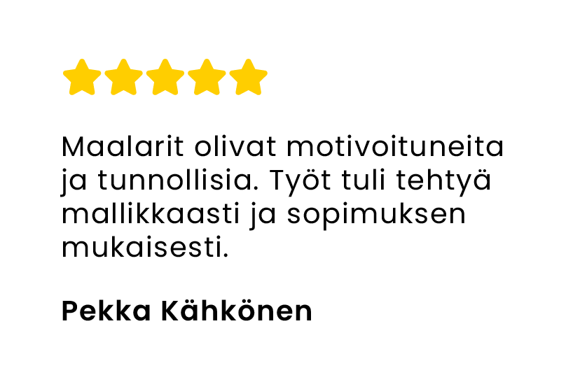 Omakotitalon maalausprojekti kestää yleensä noin 3–5 päivää. Tähän vaikuttavat tietenkin talon koko, sääolosuhteet ja maalauspinnan kunto.